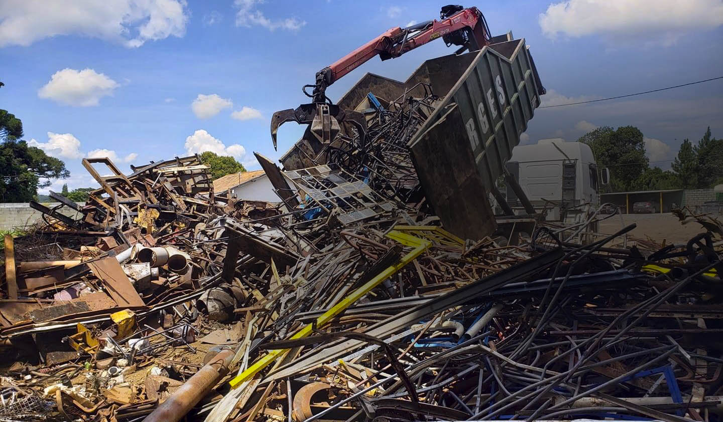 Hoje atendemos uma grande demanda de materiais ferrosos e não ferrosos, comercializando sucata metálica ferrosa voltada ao setor siderúrgico e de fundição. Com vários caminhões, prensas de sucata pesada, máquinas sucateiras e entre outros maquinários.